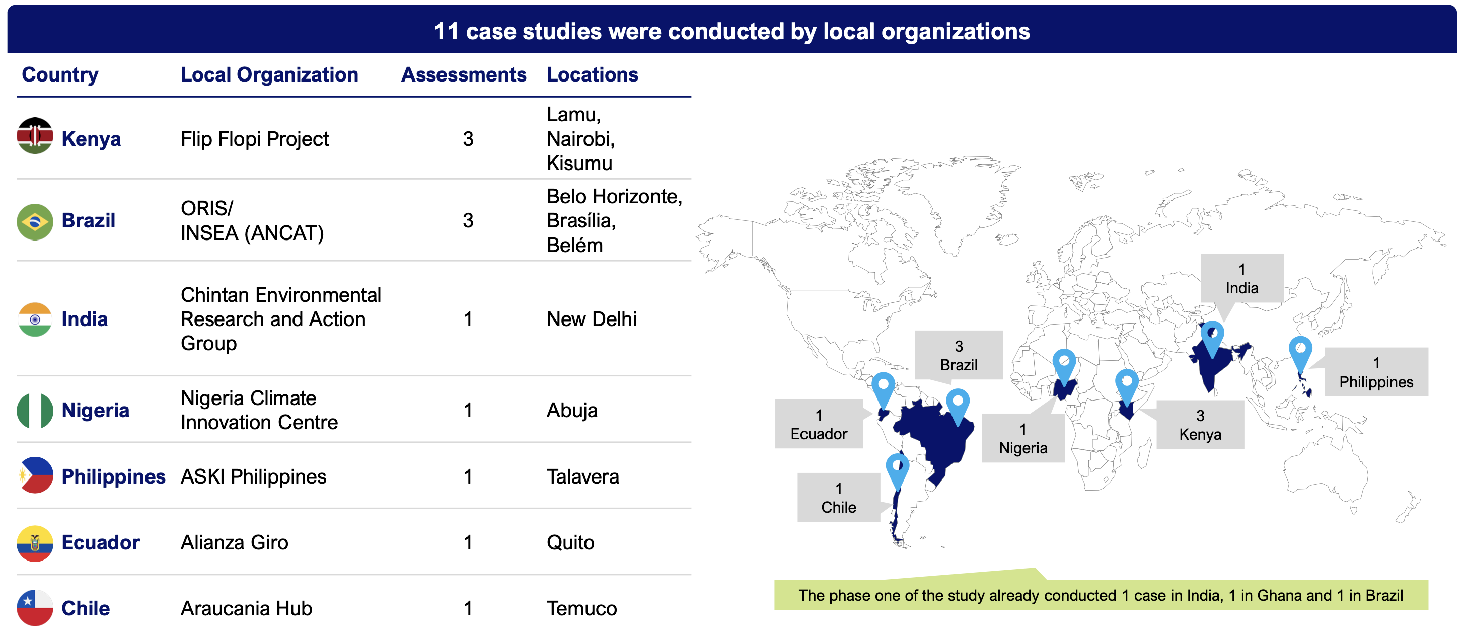 The summary document presents common challenges by waste pickers, suggested actions for the Fair Circularity Initiative, and an overview of the 11 case studies.